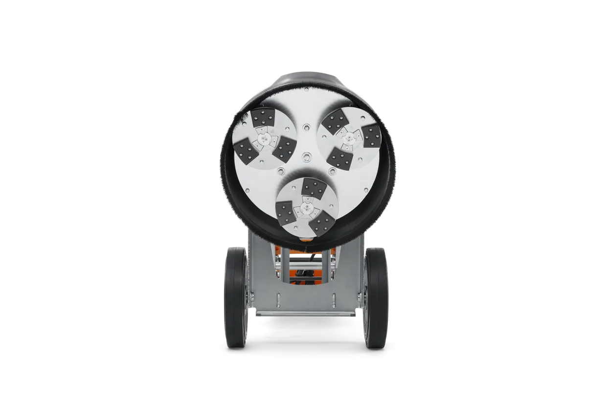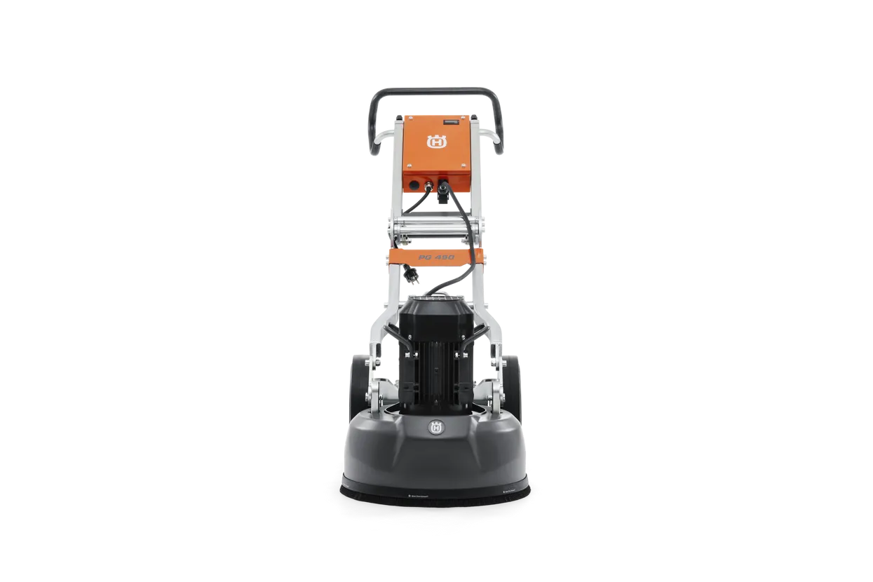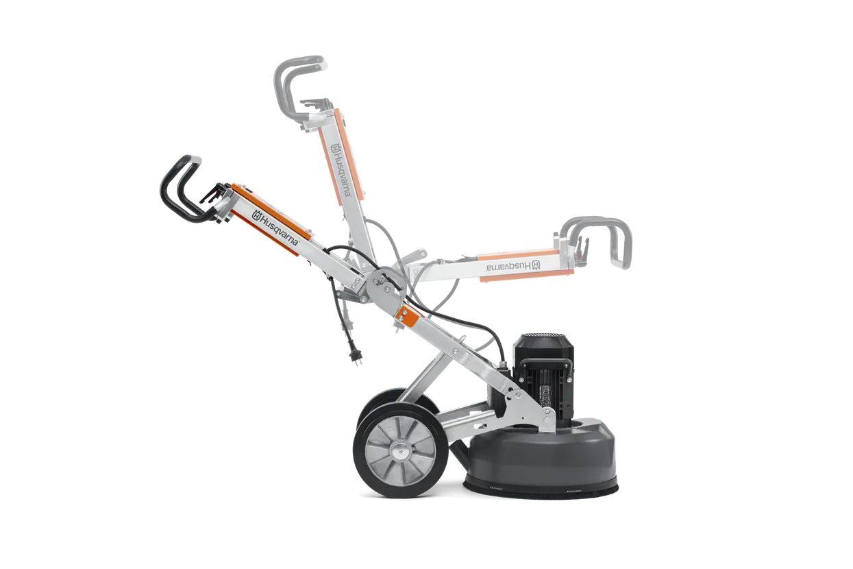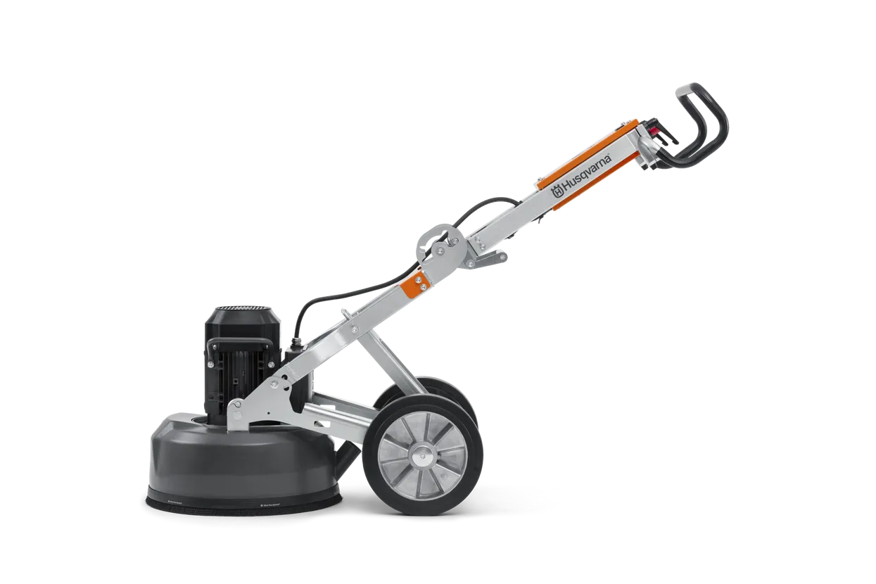 La PG 450 es una pequeña pero versátil máquina de fácil uso para remoción, preparación y pulido de pisos de hormigón, terrazos, morteros epoxi,pinturas epoxi y mosaicos graníticos con insumos diamantados. Plegable y ajustable. Sistema planetario de tres cabezales. Es adecuada también para utilizarla con Husqvarna HiPERFLOOR®, el proceso de pulido a espejo de pisos de hormigón de Husqvarna. Excelente desempeño tanto para pequeñas superficies donde es difícil llegar a los rincones, como para las superficies más grandes (hasta 500 – 1000 m2). Para un resultado optimo se recomienda el uso con la aspiradora Husqvarna DC 3000.