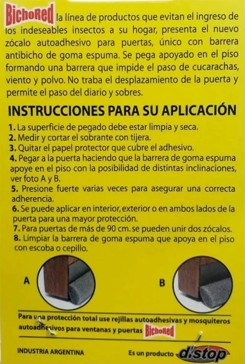 Producto diseñado para puertas con espacio inferior de hasta 9 mm. La barrera física bloquea el ingreso de insectos mientras permite la ventilación y paso de correspondencia.